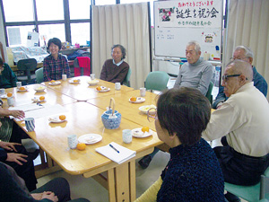 一一月二九日、九~一一月生まれの方々の誕生会を開きました。どしゃ降りの雨にもかかわらず、一一人の方が参加しました。