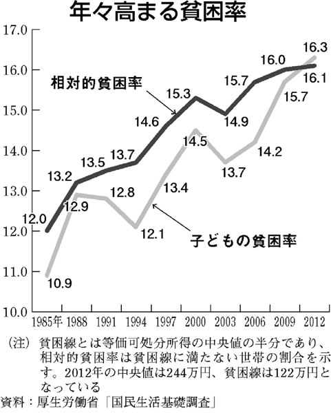 安倍政権の新自由主義的「構造改革」とアベノミクスのもと、格差と貧困が際限なく広がっています。非正規雇用は、増加し続け二〇〇〇万人を突破、年収二 〇〇万円未満の働く貧困層(ワーキングプア)は、八年連続で一〇〇〇万人に達しています。貧困率は、データ公表後、過去最高の一六・一%、子どもの貧困は 一六・三%とOECD平均を上回っています。勤労世帯の実質賃金は一七カ月連続で低下、「暮らしは楽になったか」の問いに「いいえ」四八・五%、「はい」 四・四%(日銀アンケート一四年一〇月)と答えています。内閣府の調査でも二〇一三年分で家計の所得のうちどれだけ貯蓄に回したかを示す家庭貯蓄率が戦後 初めてマイナスに転じました。国民は貯蓄を取り崩して暮らしています。こうした中、大企業は史上空前の利益を上げ、内部留保は二八五兆円に達しています。 これがアベノミクスのもたらした現実です。富める者にもっと大きな富を、国民には生活の悪化だけです。大企業が史上最高の利益をあげても、日本経済は立ち 直っていません。日本経済の六割近くを占める家計消費が落ち込んでいることが、日本経済の低迷、後退をもたらす最大の原因になっています。