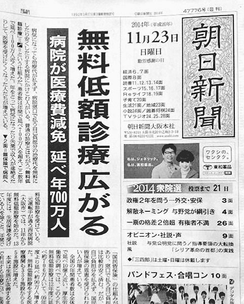 一一月二三日付の朝日新聞一面トップで「無料低額診療広がる」「無保険者駆け込む病院」と大阪、北海道などの民医連事業所と保険薬局の薬代の補助を実現 した共同組織の活動が紹介され、大きな反響が寄せられました。職員にとっても医療にかかれない患者の姿に触れ無差別平等の医療を実践する民医連への確信が 培われています。
