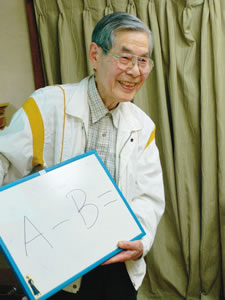 海老澤さんなら「A─B=」と書く。この心は「AとBの差は?」「エビサワ」。健康のための「お年寄りの一、十、百、千、万」とは。一日ひとつ善いことをする、十人の人と話す、百字書く、千字読む、一万歩歩く。なるほど。もう一つ健康に必要なのは「教育・教養」、いやいや「今日行く・今日用」。「用事を作って毎日出かけよう」です。これも大笑いしながら勉強になりました。