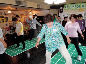 当友の会の健康づくりメニューに、新しく下肢筋力アップ・転倒防止・認知機能に効果大の歩行運動として注目されているスクエアステップ教室が加わりました。四月一四日に第一回目(一〇人)、二八日に第二回目(一六人)をおこない、地域包括支援センターの職員さんも見学に来てくれました。今後毎月二回定例化していきます。