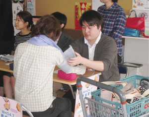 WHO世界保健デーのとりくみで4月4日、コープみやざき花ヶ島店のご協力をいただき、店頭で血圧測定とみそ汁の塩分チェックをおこないました。組合員さんが準備した3種類のみそ汁(減塩・普通・辛口)を約60人のお客さんに試飲していただき、ご家庭の味に近いみそ汁を選び、投票をしてもらいました。40人ほどが減塩のみそ汁にシールを貼っていました。
