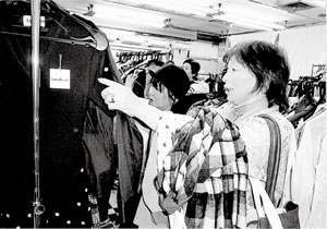 大会議室には、みなさんから寄付された衣類や雑貨が所狭しと並び、開店前から行列です。手に持ちきれないほど抱えたり、「このズボンのサイズはどうかしら」と仲睦まじいご夫婦、「一枚一〇〇円なので何枚も買える」など大盛況でした。