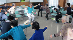 班会では「サルコ(筋肉)」「ペニア(減少)」という聞きなれない言葉の意味から説明していただきました。後半は筋肉を衰えさせないための簡単な体操も習いました。大勢で体操すると笑顔も溢れます。サークルとして続けられたらいいなと思いました。