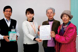 3月10日、当医療生協を代表して理事2人が賞状を受け取りました。「医療生協の長年の活動が実り、今後の地域包括ケアシステムに向けた地域活動の第一歩となりました」と感無量の様子でした。