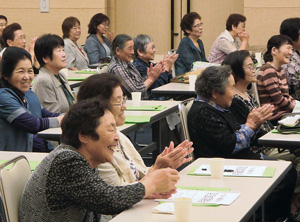 記念公演では、山形落語愛好協会より3人の落語家さんを招き、「健康の源は笑いにあり!」をテーマに落語を披露。さまざまな声色や仕草を交え、老若男女を演じ分ける落語家さんの噺の世界に、皆さんどんどん引き込まれているようでした。広い会場内には大きな笑い声が響き渡り、笑うことで心身ともに元気をいただいたようです。