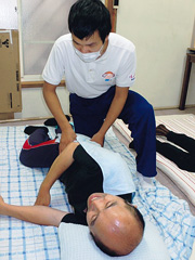 定例で行っているももぞの健康友の会の茶話会。7月22日のお楽しみ企画は、無料マッサージ体験でした。協力いただいた地域の治療院の方が、1人ひとりの病気や体の悩み事について聞き取りをし、じっくり時間をかけてその人に合わせたマッサージをしていきます。