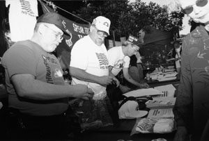 平和集会で「反戦グッズ」を売るベトナム帰還兵の人たち