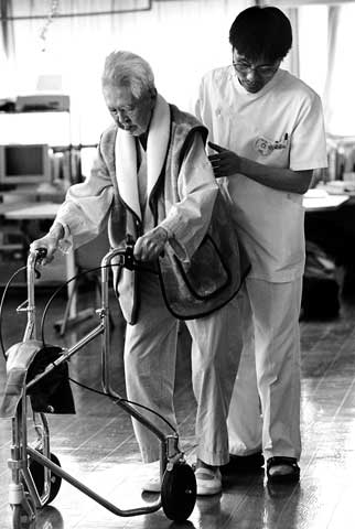 「八七歳の母が腰を痛めたのでリハビリに」という六〇歳の男性。「近くに住んでます。北病院にはずっとお世話になってます。母は高齢なので、いまさら大 きな病院に通うのでは本人も疲れるし、在宅ではなく、こうしてみなさんと一緒にリハビリができたほうが、励みになると思います」と。今回の改定がめざす方 向とは逆に、地域の通いやすい病院を利用者は望んでいるのですが―。
