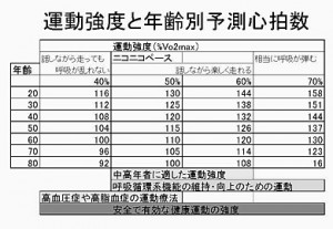 運動をこれから始める人、中高年者、体力の弱い人は、もう一段階低い40%の運動強度、話しながら走っても呼吸が乱れない「ルンルンペース」から始め、運動直後に脈を測る習慣をつけることをおすすめします。