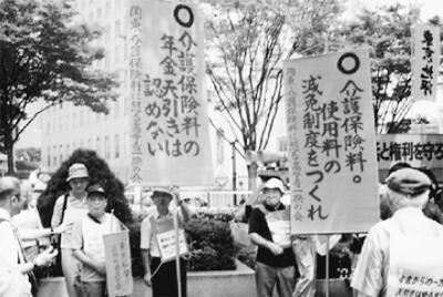 介護保険が発足して二年半。「とぼしい年金から保険料を取るな」「特養ホームの入居、もう待てない」――怒りをこめて行動している人たちがいます。 (中西英治記者)