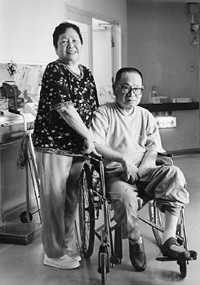 六三歳で倒れるまで、まじめな、いうところのなかった夫。「親のきめた人にまちがいはなかった」と思っています。「生活してきたところでみてあげたい が、座ることもできない私が重い夫を支えるのは大変。私もいつ入院するかわからないので、ホームに入れたいんです。心配で、泣くこともあるどころじゃない わいね。でもそんなこと、だれにもいわれんし、夫に涙みせられないしね」