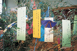 子どもたちを見守っていた、五・六年生担当の春田安子教諭は「きょうの会は五時間かけて準備しました。いつもは緊張してしまう子どもたちなのにきょうは リラックスしてますね」と。七夕飾り用の一〇メートル近くある笹二本は「男の先生たちが切って運んだんですよ」。全校あげてのとりくみとなりました。
