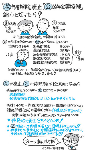 審議中の04年度予算案にもり込まれている「老年者控除」の廃止、「公的年金等控除」の縮小・廃止は、高齢者からの大収奪になります。
