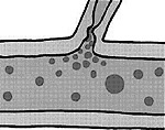頸動脈や頭蓋内の太い動脈の内腔に、血液中のコレステロールや脂肪がくっついてかゆ状のかたまり(アテローム)になって血管を狭くし、そこに血栓(血の かたまり)が付着しつまってしまうものです。症状は比較的ゆっくり進行します。