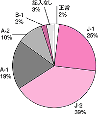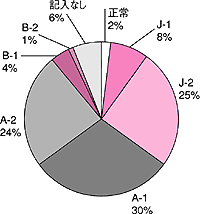 | J(何らかの障害はあるがほぼ自立。1人で外出できる)─1交通機関を使える ─2隣近所まで/A(家の中ではおおむね自立)─1介助により外出できる ─2日中も寝たり起きたり/B(寝たきりに近いが座位を保てる)─1車いすに移り、食事・排泄はベッドから離れて ─2介助により車いすに移乗する | |