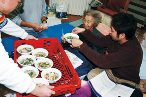 | 温かいけんちん汁に笑顔がこぼれる(ながおか生協診療所 |