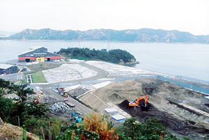瀬戸内海に浮かぶ香川県豊島。日本最大の産業廃棄物不法投棄事件の舞台となったこの島には、一時は甲子園球場の容積のざっと五倍、五〇万禔もの産 廃が高さ二〇神まで積み上げられ、異臭を放ち、醜悪な姿をさらしていた。いまは分厚い保護シートが被せられ、汚染土壌を処理して隣の直島に運び、リサイク ルして資源化する「エコタウン事業」が、〇三年九月から始まっている。