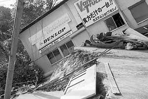 | 道がせり上がり、家が傾いた。新潟県中越地震(小千谷市。04年10月29日) |