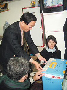 薬局経営者のHさんが買付け担当で依頼された薬を準備し、西村さんが現物を確認。運送会社経営のMさんがイラクまで搬送し、イラク国内では現地ボラン ティアが受け取って病院に運ぶ。届いたら病院から、メールか電話で確認がくるというシステムです。