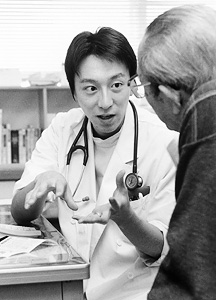 「藤原先生は、聞き上手で、患者さんと目線をあわせて話されるので、患者さんの信頼も厚く、とても人気のある先生です。三月には研修を終えて坂総合病院に帰られるので、みんなさびしがってます」と医局事務の早川加代さん。