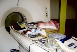 CTのそばには修理のための配電基盤や乾燥剤まで置かれていて、なんとか使えないかと必死で修理しているようすが伺えました。診断機器が壊滅状態で、病 院の機能も回復していないため、病院収入はツナミの前の50%という状況です。