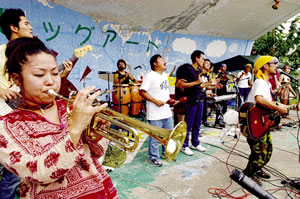 平和を考えながら音楽を楽しもう―核兵器廃絶をめざしてバンドライブと被爆体験を聞く「ピース&ロックジャム」が八月二八日、三重県津市の津市観音公園 で開かれました。演奏は県下の九つのアマチュアバンド。ロック、フォーク、アフリカ民族音楽と多彩です。