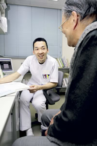 〇四年八月からは、看護師による糖尿病療養外来も始めました。「最初は一対一で患者さんと話さなくてはいけない、と自分の責任を感じた」という看護師の林 未来子さん(24)は、「どうやって療養外来をすすめたらいいか、カンファレンスで相談して、みんなですすめてきたことがよかった」と振り返ります。
