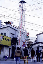 | 火の見やぐらの大きな垂れ幕が人目をひく(座間市) |