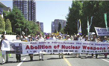 私たちは、日本原水協代表団(一四六人)の一員として参加しました。世界平和フォーラムは、カナダのNGO(非政府組織)も参加している世界フォーラム協会とバンクーバー市平和正義委員会が主催し、〇三年から準備されたものです。