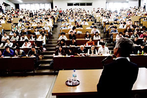 「まさかこんなに来てくれるとは思っていなかった」と話すのは、つどいの事務局をつとめた岡山大学医学部三年の佐藤航さん。一〇〇人ぐらいかな、と思っ てふたを開けてみると、三七〇人! 一般の人の姿もありました。「高校生も来てくれて、進路を考える上で参考になるといってくれてうれしかった」といいま す。