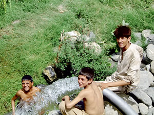 | 灌漑用の井戸で水浴びをする子どもたち(ペシャワール会提供) |