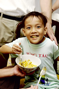障害を持った子どもたちの教育も保障されていません。人口一〇〇万のタイニン省に、盲・聾学校が一校あるだけでほかに養護学校はありません。障害を持っ た子どもたちが地域の小学校に通うことはできますが、特別な配慮は一切ないので、歩けない子、字が書けない子は、それだけで授業に参加できなくなります。