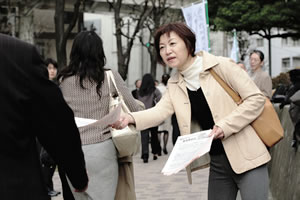 橋詰さんたちは、高金利引き下げを求める運動を精いっぱい強めた。労働組合や消費者団体も大挙、運動に加わるなか、炎天下、全国をキャラバンカーで回っ た。日本弁護士連合会(日弁連)が主催した集会で橋詰さんらが体験を語ると、与党の国会議員も息を呑んで聞いた。