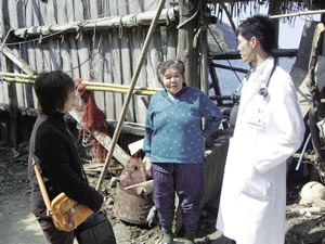 三月二九日には「血圧が高くて心配」というお宅を訪問。「地震で、母の介護ベッドにタンスの引き出しが落ちてきた。たまたまトイレに行っていて助かった が、寝ていたら頭に直撃していたはず…」と、息子さんが地震当日の恐怖を語ります。