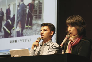 | 報告する「ファルージャ再建プロジェクト」のカーシムさん(左)と高遠さん(撮影・志葉玲) |
