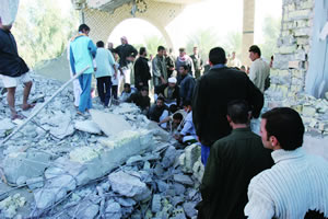 | 06年11月、ラマディ市内アルワン地区。空爆された民家から遺体を引き出す住民たち |