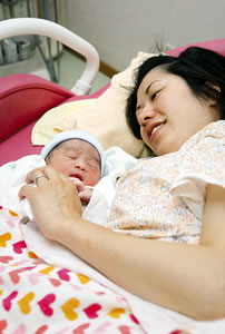 「二時間ほど前に生まれたの」助産師の中川裕美さんがささやきました。