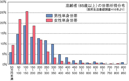 | 図1 高齢単身者の7割が年間収入200万円以下 |