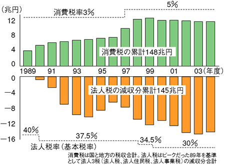 結局、小泉・安倍政権とつづく社会保障改悪が浮き彫りにしたのは、国や大企業の負担だけが軽くなったという現実。「福祉のため」の消費税は、法人税の軽減などに消えただけでした(図2)。