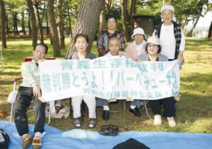 原告たちはそんな人たちからの期待も実感しています。「お母さん、えらいな」茂木さんは市場で見知らぬ人から背中をたたかれました。テレビで茂木さんた ちの裁判のことを見たそうです。街頭でカマボコを売り、生活している同年代の女性でした。夫が脳梗塞で倒れ、生活相談に行った役所でダンナが死んだら来 い、と帰された経験がありました。「オラたちのためにもがんばってけさい」と励まされました。