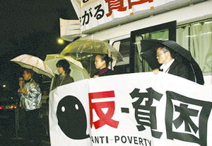 二〇〇六年四月、生活保護の七〇歳以上の受給者の「老齢加算」が廃止されました。生活保護削減策として政府が最初に手をつけたも の。約二割の収入減となり、食費を抑え、入浴を控え、外出や交際を絶って過ごす高齢者の姿が民医連の調査でも明らかに。この加算廃止を「憲法二五条に違反 する」として、廃止の差し止めを求めた裁判が八都府県で起こされています。「生存権裁判」です。支援の輪もひろがっています。青森で取材しました。
