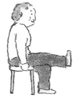 長崎・大浦診療所の富田満夫先生は、このタイプの腰痛に対して「あし4の字」ポーズのまま10回深呼吸するようアドバイスしています。足を膝の上に置く のがつらければ床の上でも構いません。このときに曲げた膝と反対方向に顔を向けると、全身の緊張が取れます。
