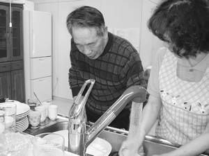| ヘルパーといっしょに食器洗い。かりぷ・もみじ台デイサービスにて(記事とは関係ありません) |
