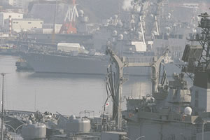 | 米軍横須賀基地と手前に海上自衛隊の基地がある |