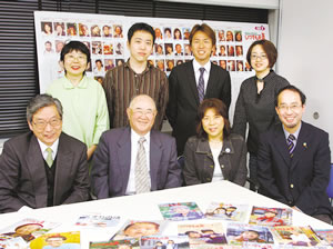 | 前列左から、八田さん、高橋さん、今井さん、長瀬さん。後列は現在の編集部。左から西原、多田、井ノ口、木下 |