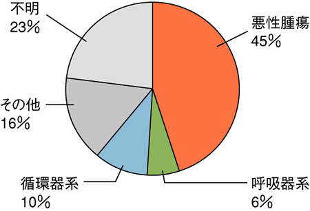 死因の内訳は悪性腫瘍が一四件で約半数、どの人も手遅れの状態であった。病気の管理さえできていれば、明らかに死なずにすんだ人もいる(資料)。