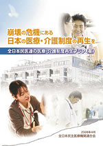 全日本民医連は、この国民健康保険の問題に対し、このほど発表した「医療・介護再生プラン(案)」の中で別項のような改善を提言。「国民皆保険制度」の崩壊をくいとめようと、呼びかけている。