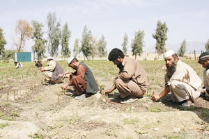 | タリバン政権時代から活動しているNGO。試験農場で植物を栽培し、帰還民に分けている |