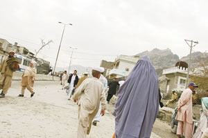 | パキスタンとの国境。いまだに多くの女性がブルカを使用している |